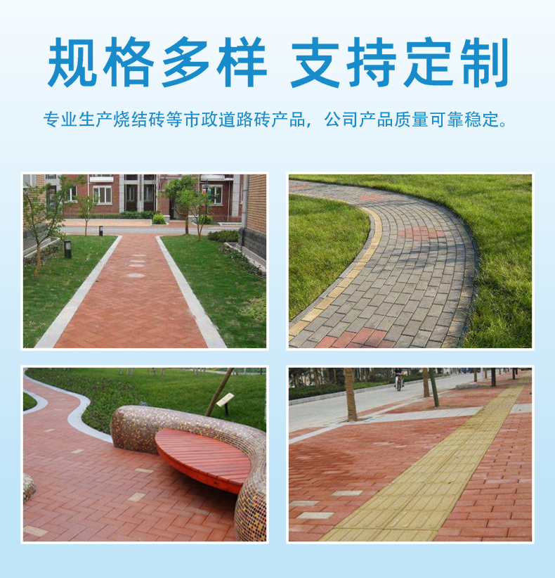 ?  廣場(chǎng)磚屬于耐磨磚的一種,具有整體性強(qiáng)、抗壓、抗折、強(qiáng)度高、不變色、不粉化、耐磨、經(jīng)久耐用等特點(diǎn)。可廣泛應(yīng)用于一般人行道、公眾街道、大樓中庭、露天娛樂(lè)場(chǎng)、行車路、汽車專用道路、停車場(chǎng)、一般餐廳、酒店大堂、廣場(chǎng)、商業(yè)大廈、噴水池、游泳池旁邊休閑區(qū)、庭院地板、公園人行走道、城市居住小區(qū)人行走道、綠化區(qū)散步走道等。
